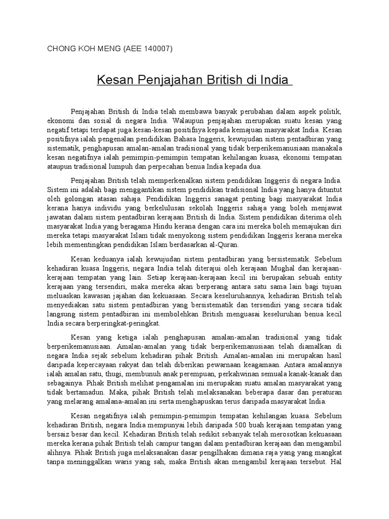 Kesan Penjajahan British Di India Pdf